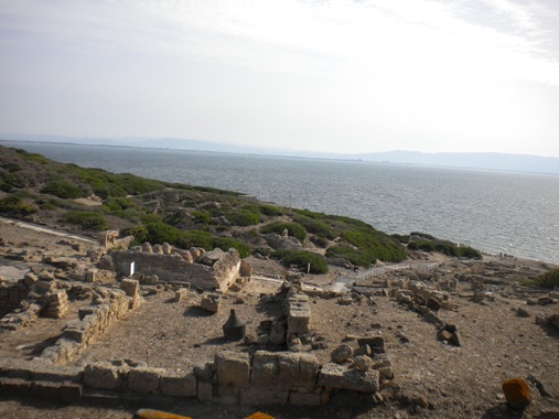 Thursday morning we headed off to the beach and the ancient Phoenician settlement, Tharros. Below is a Spanish watchtower, one of the many the dot the island.